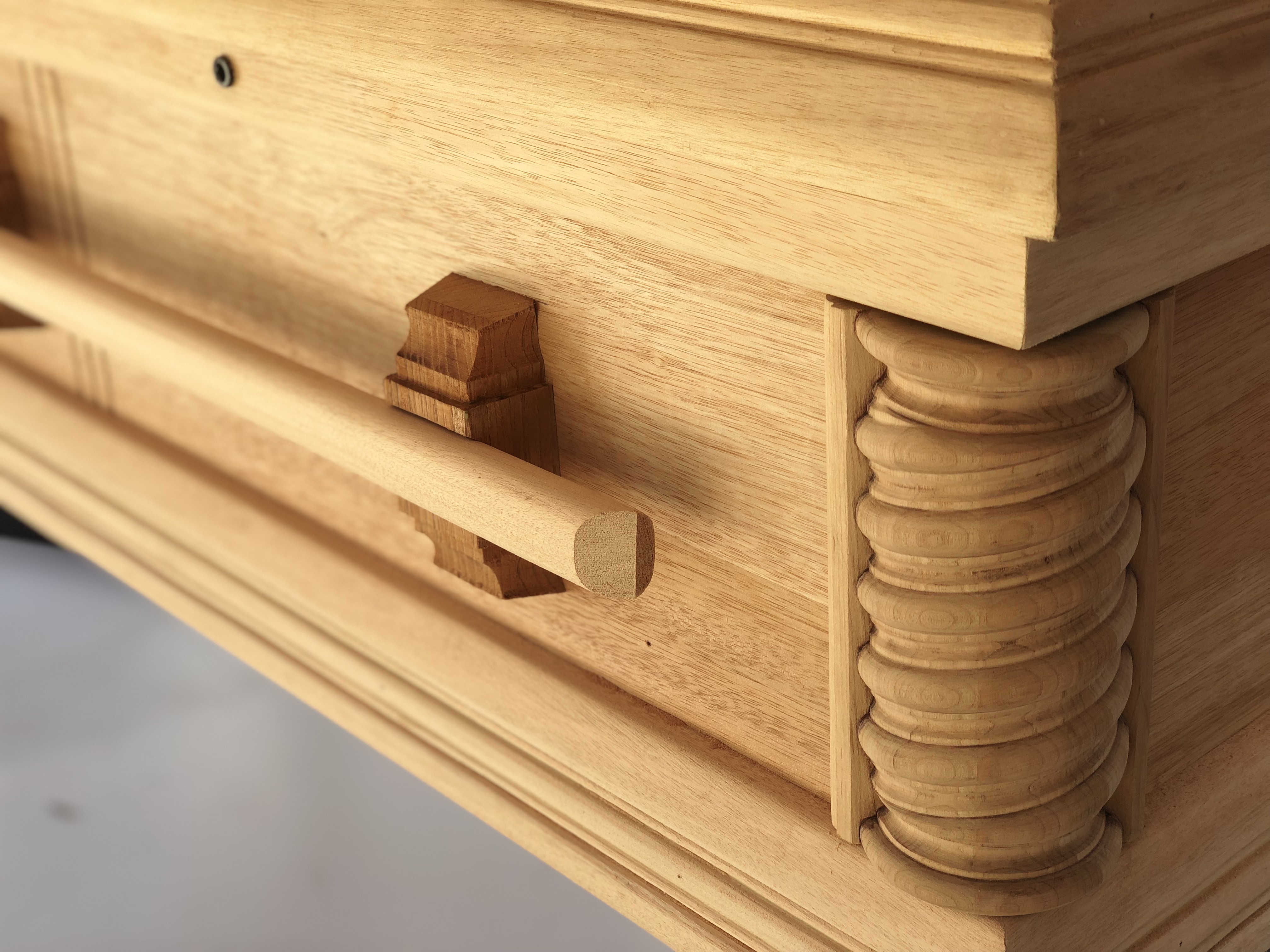 Este tipo de piezas se pueden hacer bajo solicitudes especiales, como medidas, tipos de madera, acabado, incrustaciones y metales preciosos.